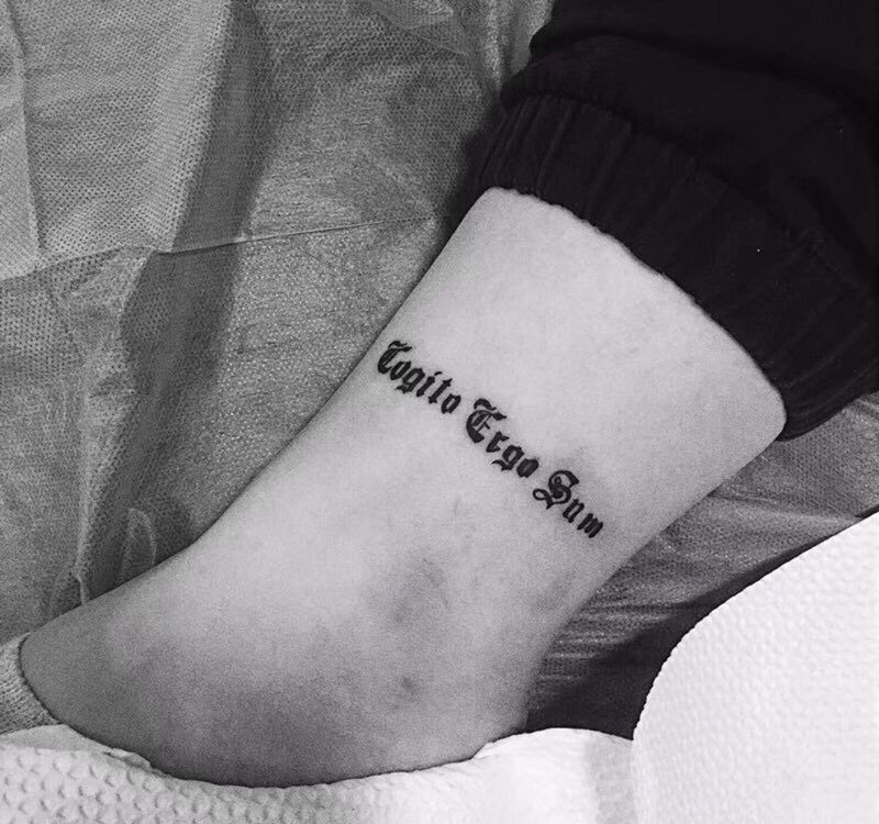 哥特字纹身图片_腿部图腾花体字纹身图案