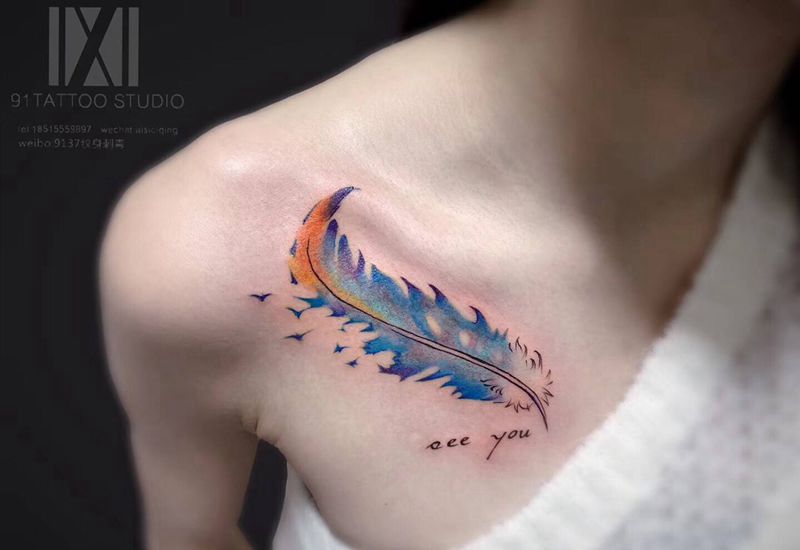 当前位置: 首页 >北京市纹身店-北京91-TATTOO纹身图案>羽毛纹身图片_胸部水彩纹身图案