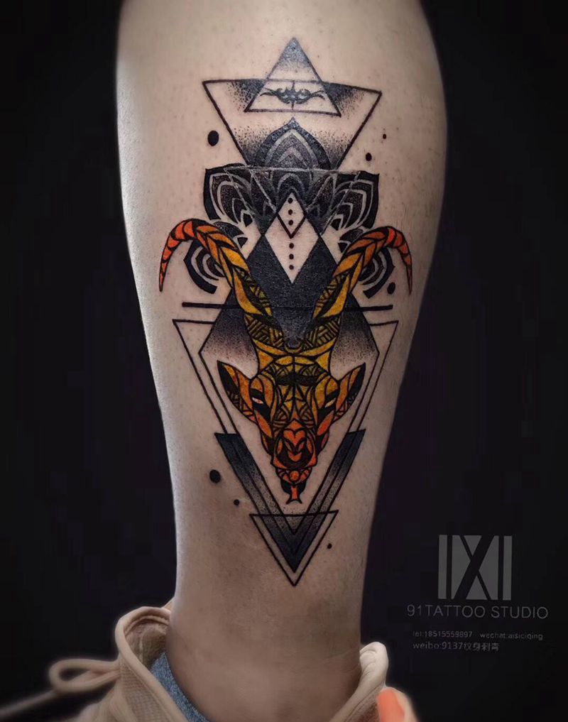 当前位置: 首页 >北京市纹身店-北京91-TATTOO纹身图案>几何羊头纹身图片_腿部几何羊头纹身图案
