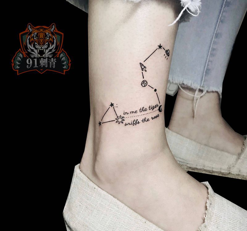 星座纹身图片_腿部几何星座纹身图案