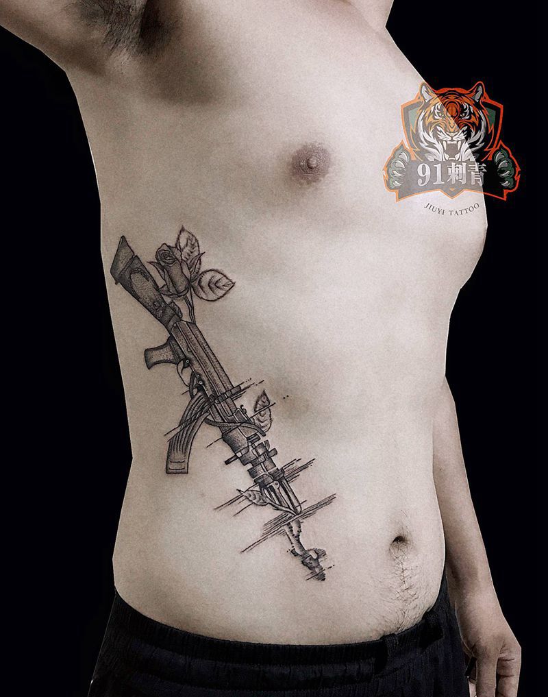 当前位置: 首页 >北京市纹身店-北京91-TATTOO纹身图案>AK步枪纹身图片_腰部点刺AK步枪纹身图案