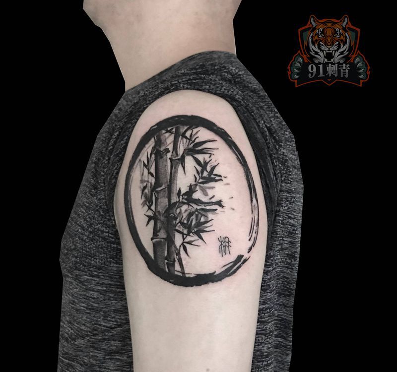 水墨画纹身图片_手臂水墨水墨画纹身图案
