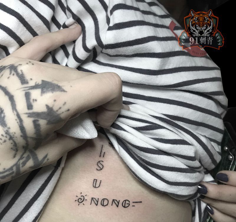 • T关于私处得爱!纹身图片_成品腹部清新字符图腾纹身图案