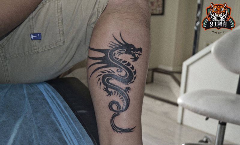 图腾龙纹身图片_腿部图腾龙纹身图案