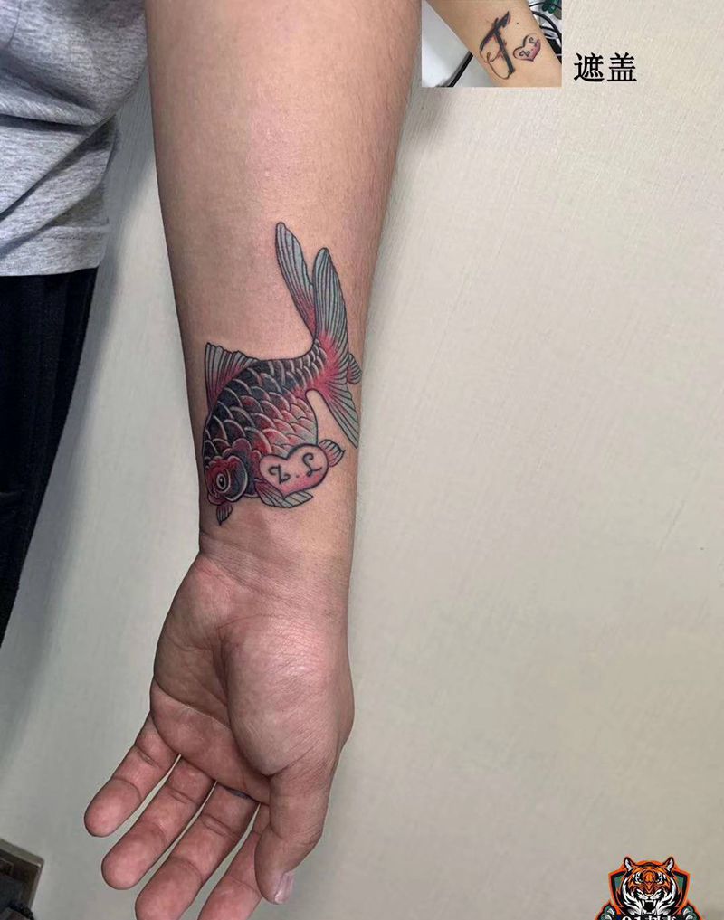 当前位置: 首页 >北京市纹身店-北京91-TATTOO纹身图案>锦鲤纹身图片_手臂老传统新传统锦鲤纹身图案