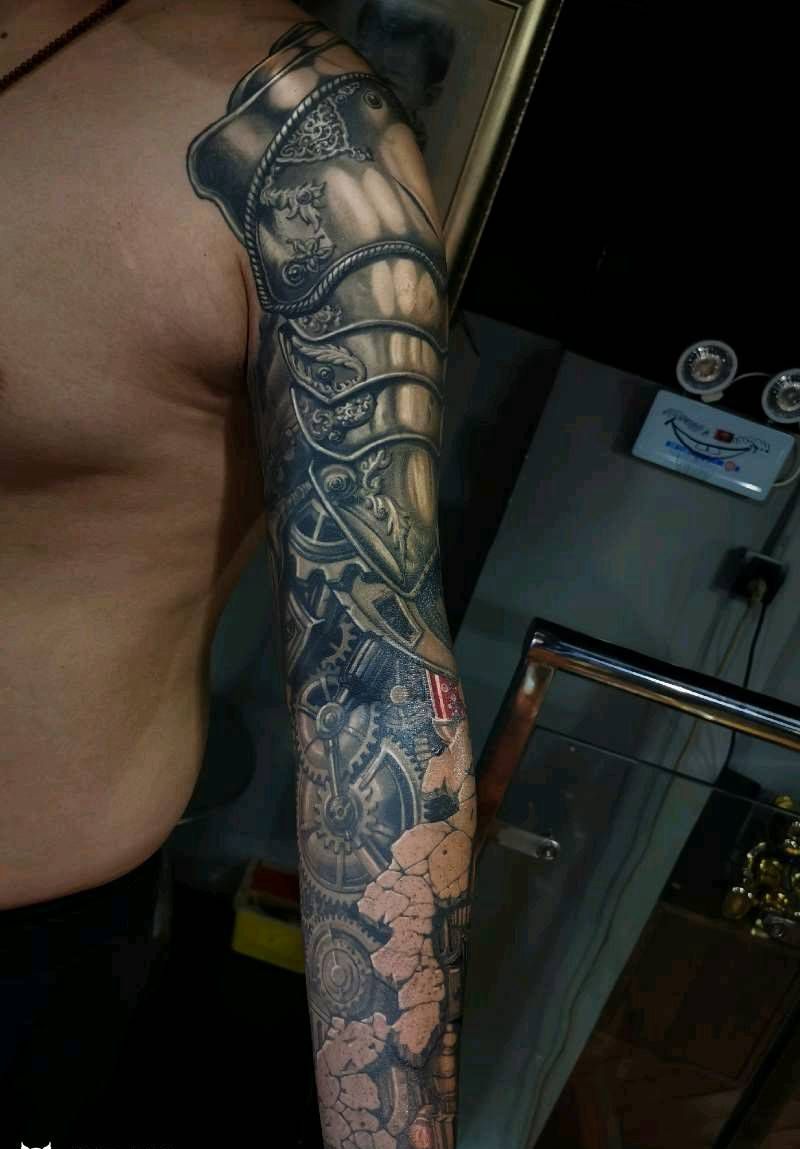 当前位置: 首页 >北京市纹身店-诡异空间文身艺术工作室纹身图案>铠甲机械和石裂纹身图片_手臂纹身图案