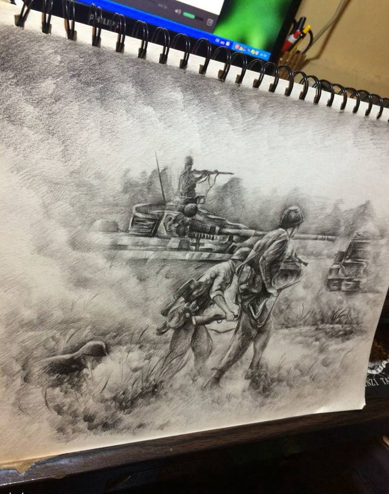 小画一张,二战题材纹身图片_成品手稿纹身图案
