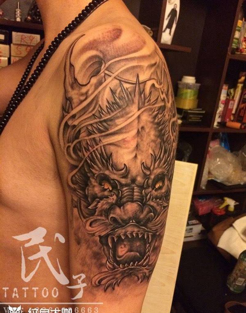 当前位置: 首页 >北京市纹身店-北京民子刺青纹身图案>大臂龙头纹身图片_