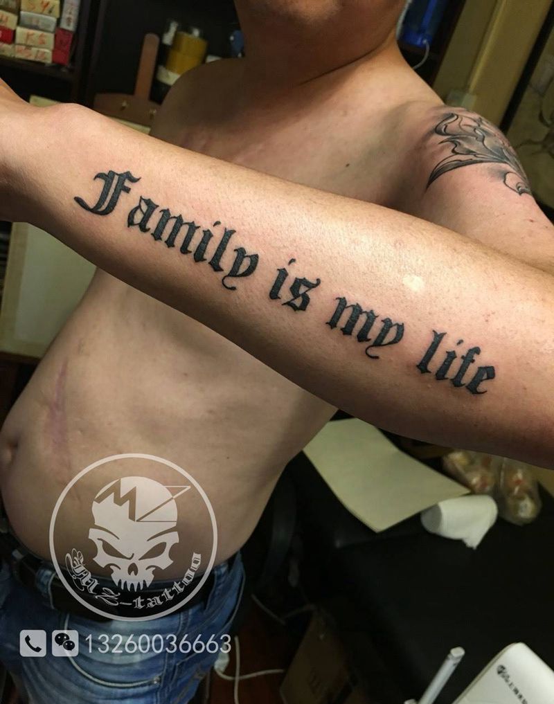 • T家庭图,一家四口生日纪念!纹身图片_手臂纹身图案