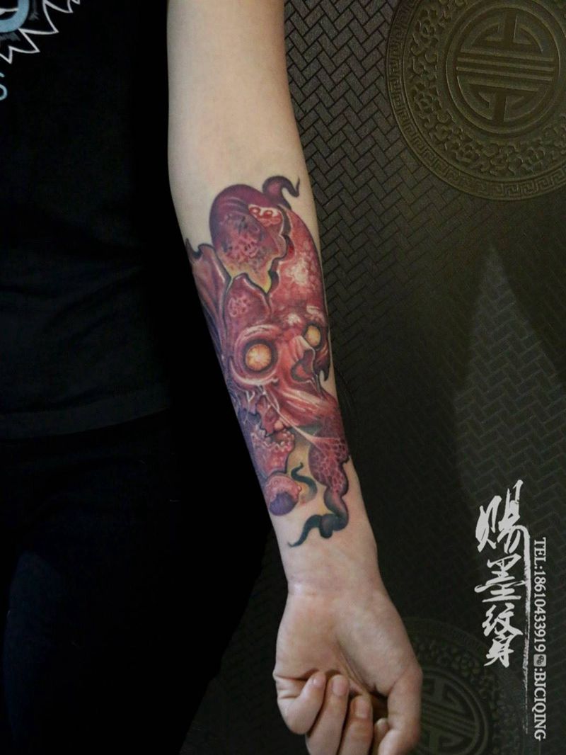 当前位置: 首页 >北京市纹身店-北京赐墨纹身纹身图案>骷髅小臂纹身图片_