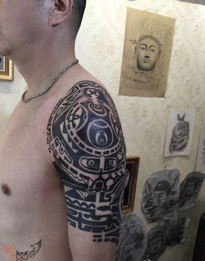 • 纹身吧推荐的披肩图腾半胛纹身图案作品展示