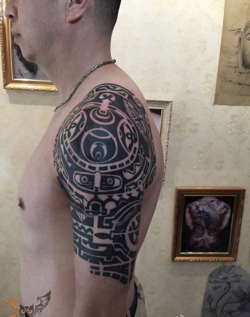 • 纹身吧推荐的披肩图腾半胛纹身图案作品展示