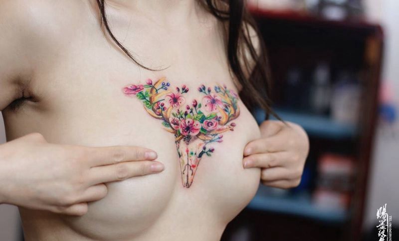• 女性大花胸纹身_43张霸气漂亮的女性大花胸纹身图案作品