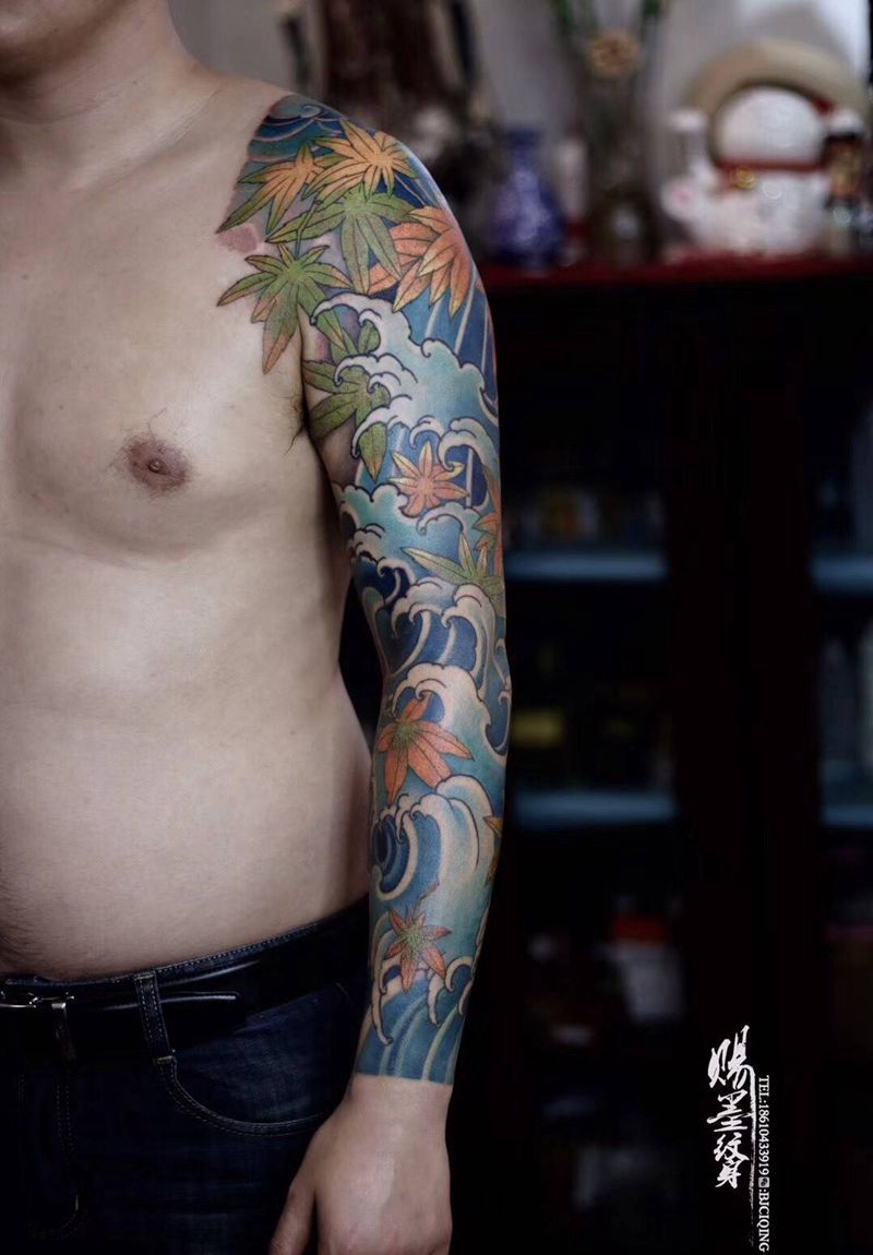 当前位置: 首页 >北京市纹身店-北京赐墨纹身纹身图案>彩色水浪花臂纹身图片_