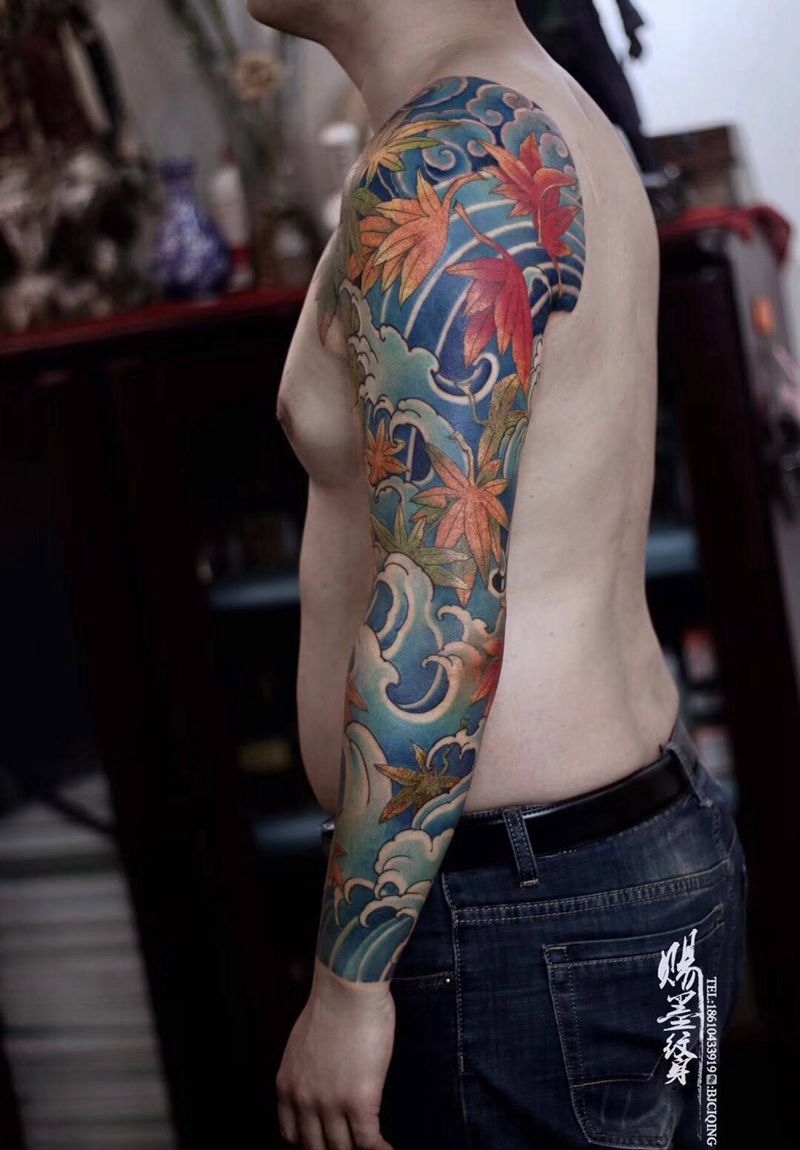 当前位置: 首页 >北京市纹身店-北京赐墨纹身纹身图案>彩色水浪花臂纹身图片_