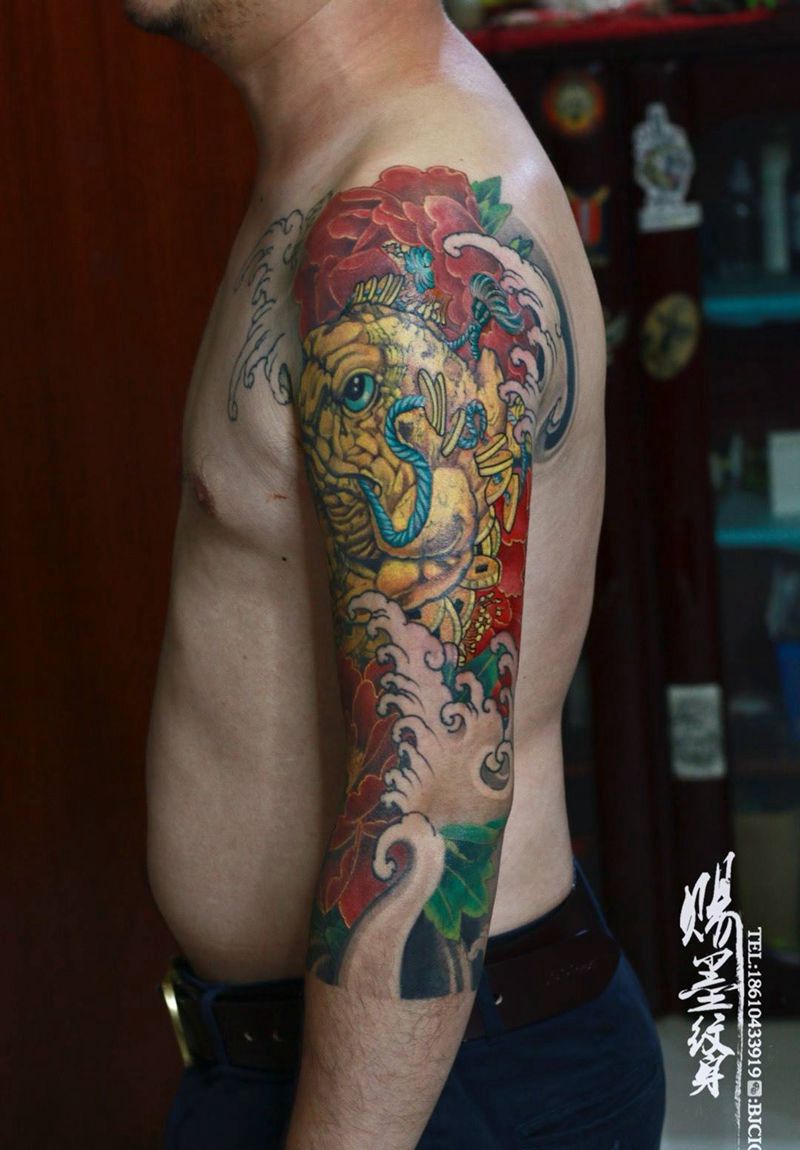 当前位置: 首页 >北京市纹身店-北京赐墨纹身纹身图案>金蟾纹身图片_手臂新传统花臂金蟾纹身图案