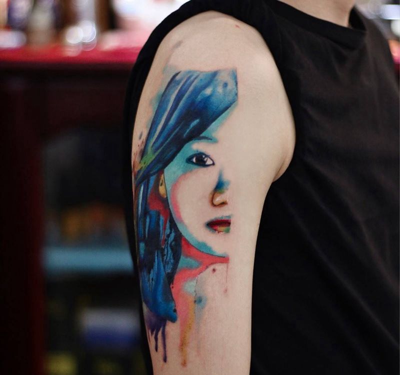 当前位置: 首页 >北京市纹身店-北京赐墨纹身纹身图案>水彩肖像纹身图片_肩部水彩水墨赐墨纹身纹身图案