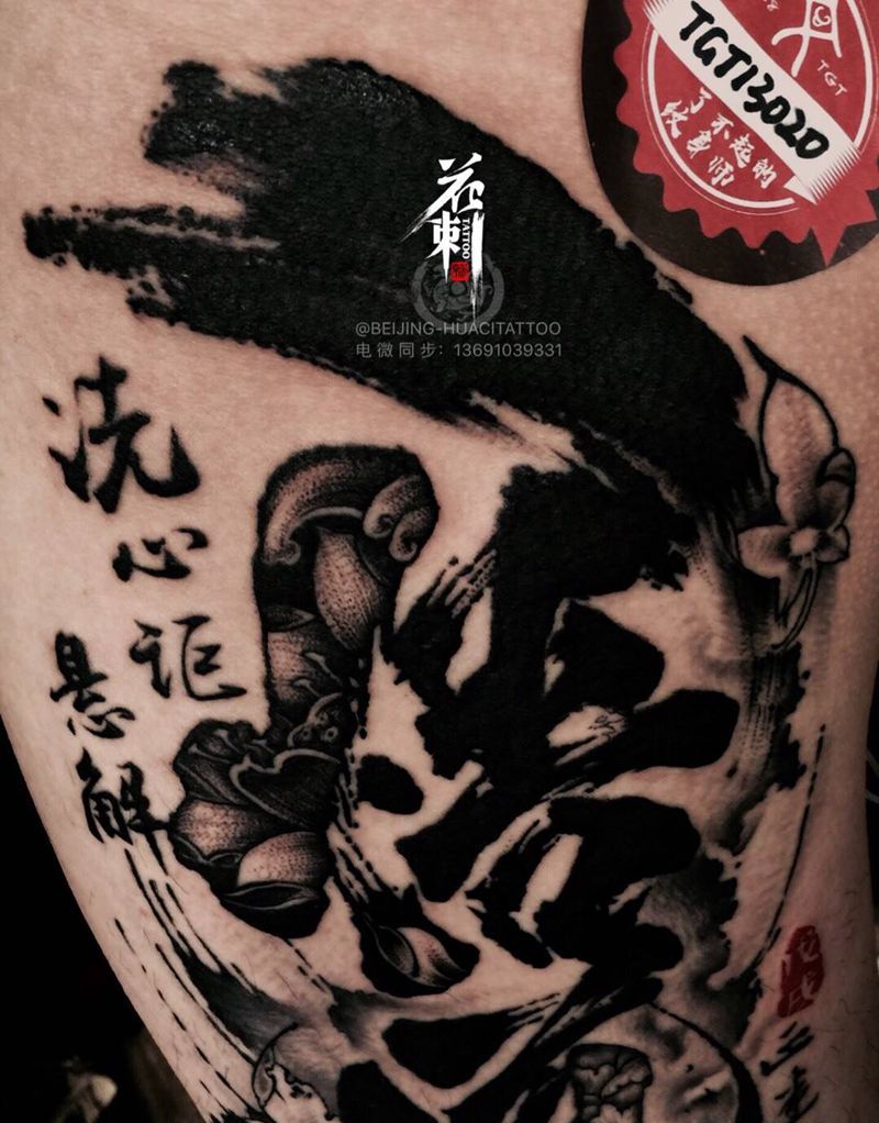 悟 道 原创纹身图片_腿部水墨原创纹身图案