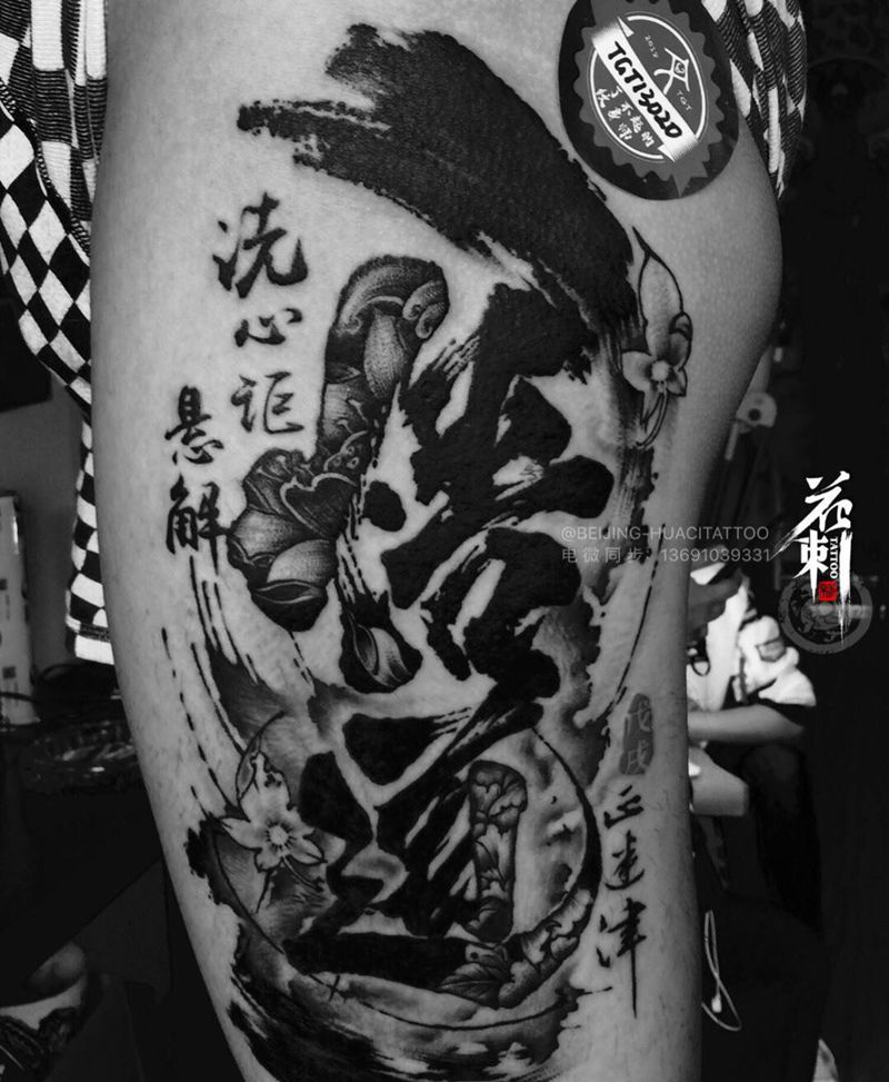 悟 道 原创纹身图片_腿部水墨原创纹身图案