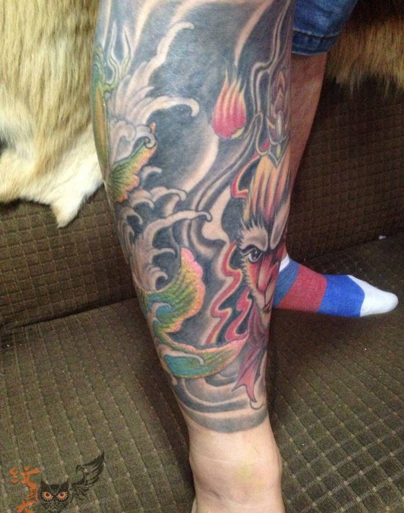 • T网红王老大花腿龙纹身图片_腿部新传统纹身图案