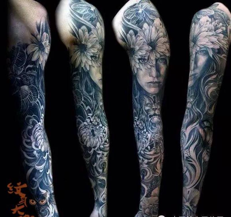 当前位置: 首页 >北京市纹身店-北京花刺纹身工作室纹身图案>黑灰 花臂纹身图片_