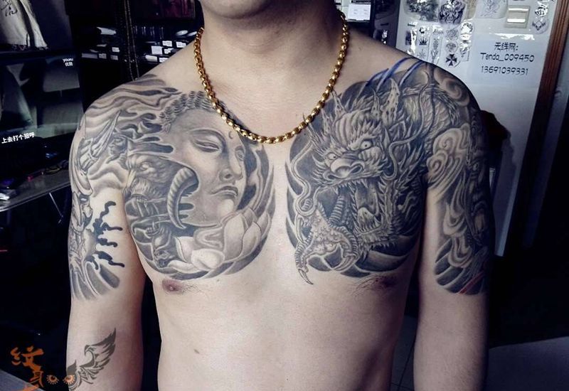 • 男性大花胸_42张优秀的男性大花胸纹身图案图片