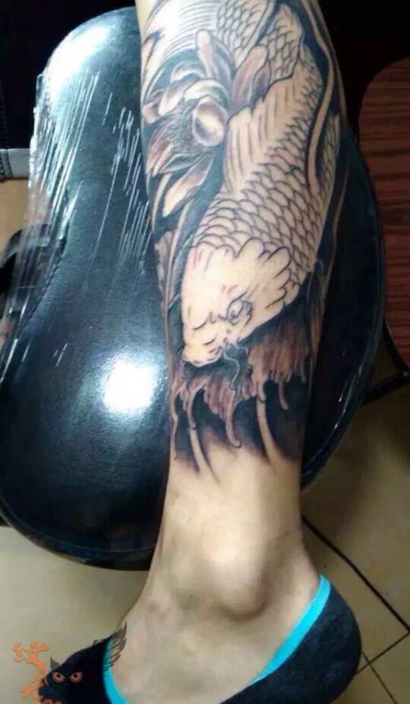 当前位置: 首页 >北京市纹身店-北京花刺纹身工作室纹身图案>小腿鲤鱼纹身图片_
