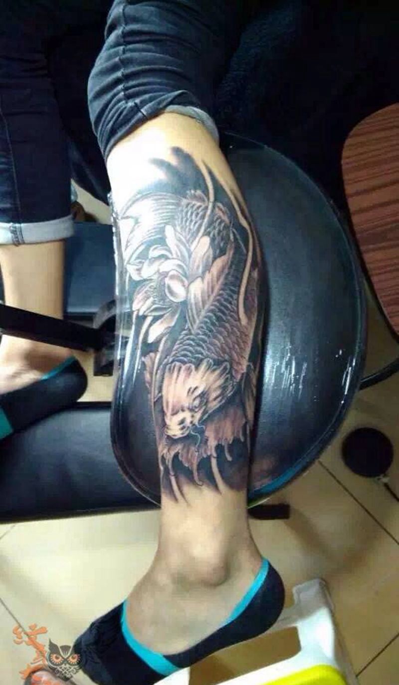 当前位置: 首页 >北京市纹身店-北京花刺纹身工作室纹身图案>小腿鲤鱼纹身图片_