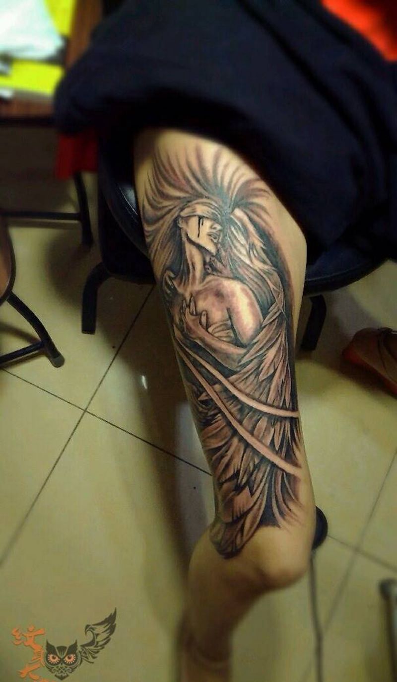当前位置: 首页 >北京市纹身店-北京花刺纹身工作室纹身图案>大腿坠落天使纹身图片_