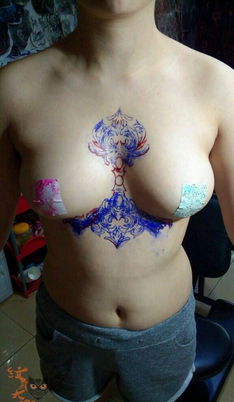 • 女性大花胸纹身_43张霸气漂亮的女性大花胸纹身图案作品