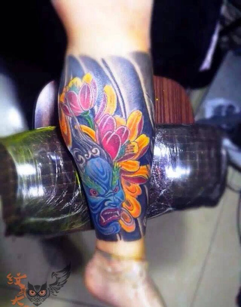 • T网红王老大花腿龙纹身图片_腿部新传统纹身图案