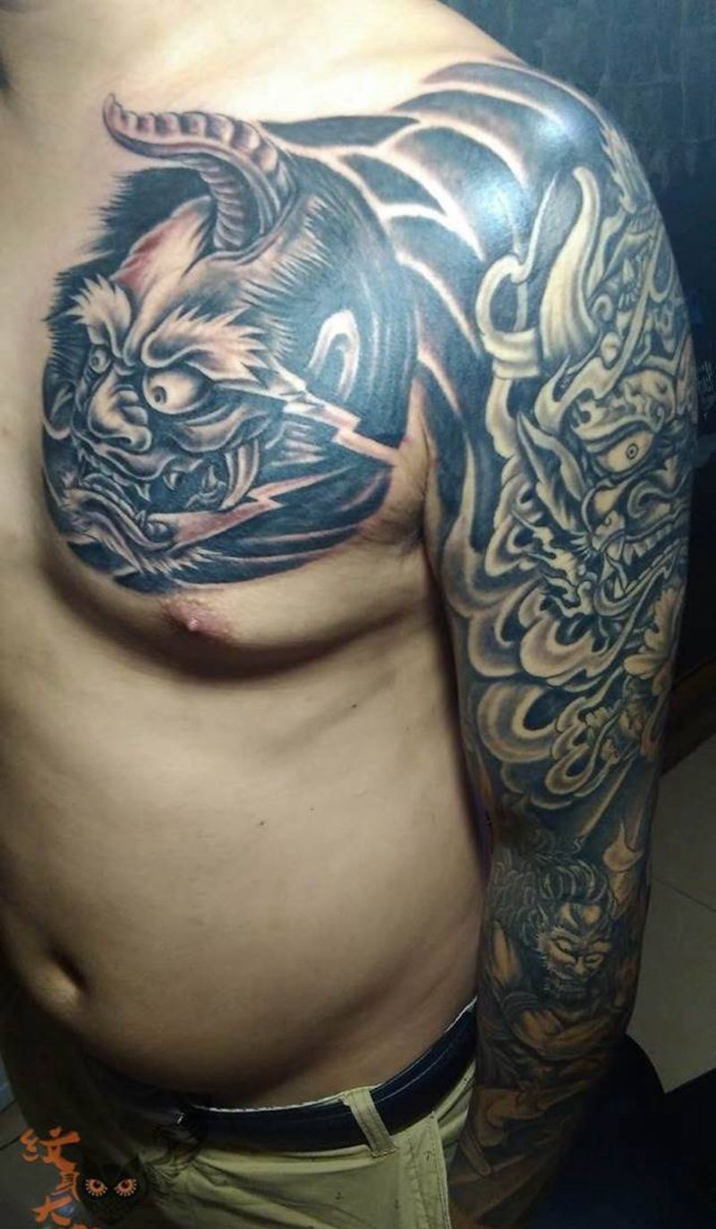 当前位置: 首页 >北京市纹身店-北京花刺纹身工作室纹身图案>花臂半甲完成纹身图片_