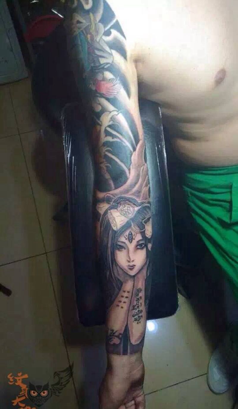 当前位置: 首页 >北京市纹身店-北京花刺纹身工作室纹身图案>作品接花臂未完成纹身图片_