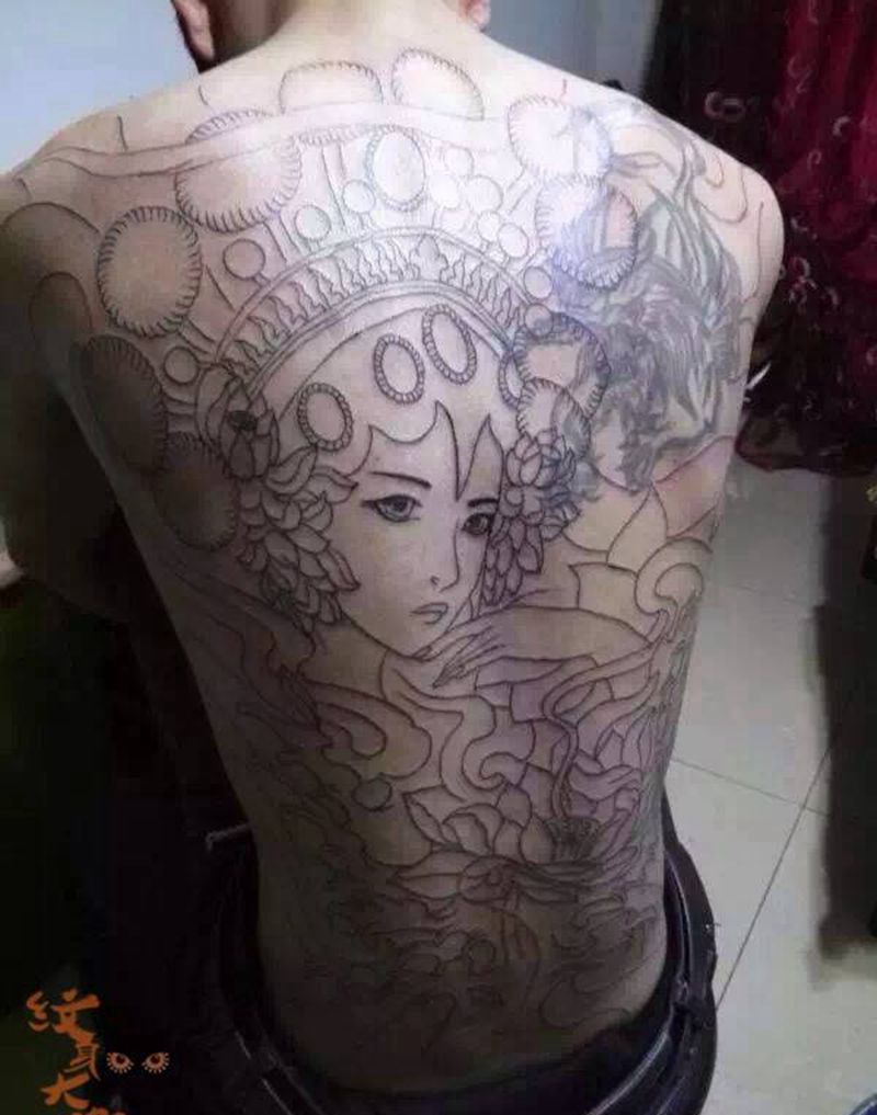 当前位置: 首页 >北京市纹身店-北京花刺纹身工作室纹身图案>满背花旦(未完成)纹身图片_