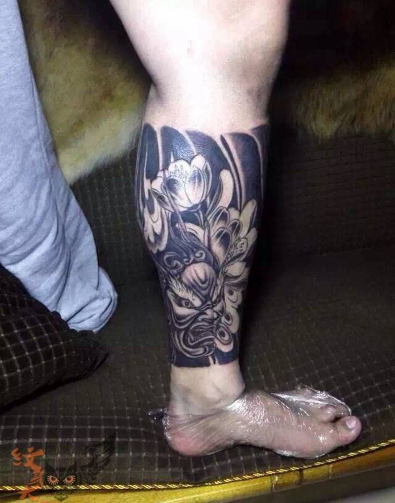 • T网红王老大花腿龙纹身图片_腿部新传统纹身图案