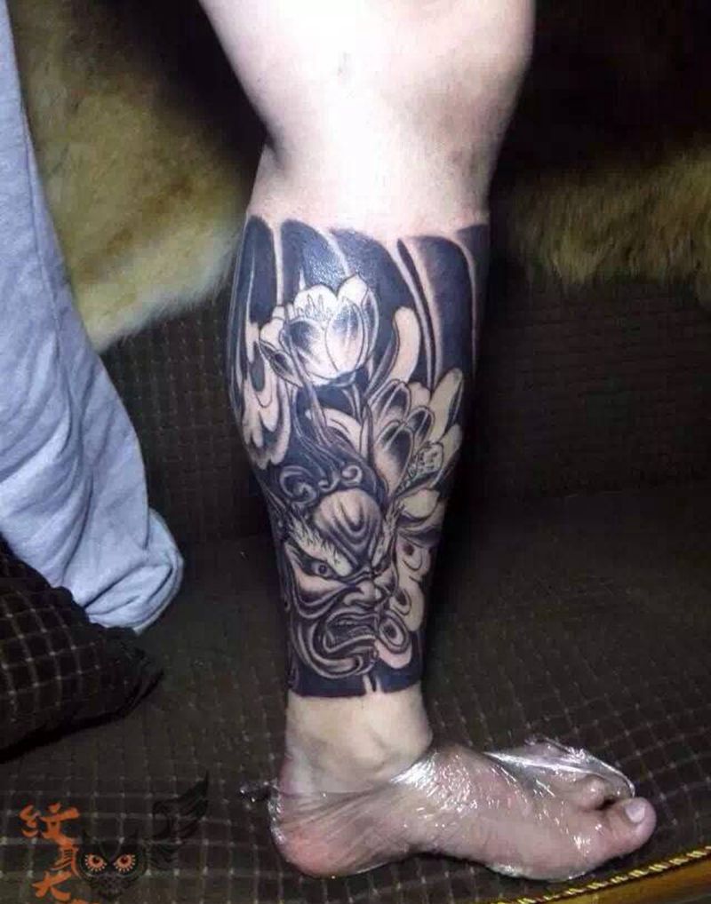 • T包小腿吹火男+阿多福纹身图片_腿部老传统新传统吹火男阿