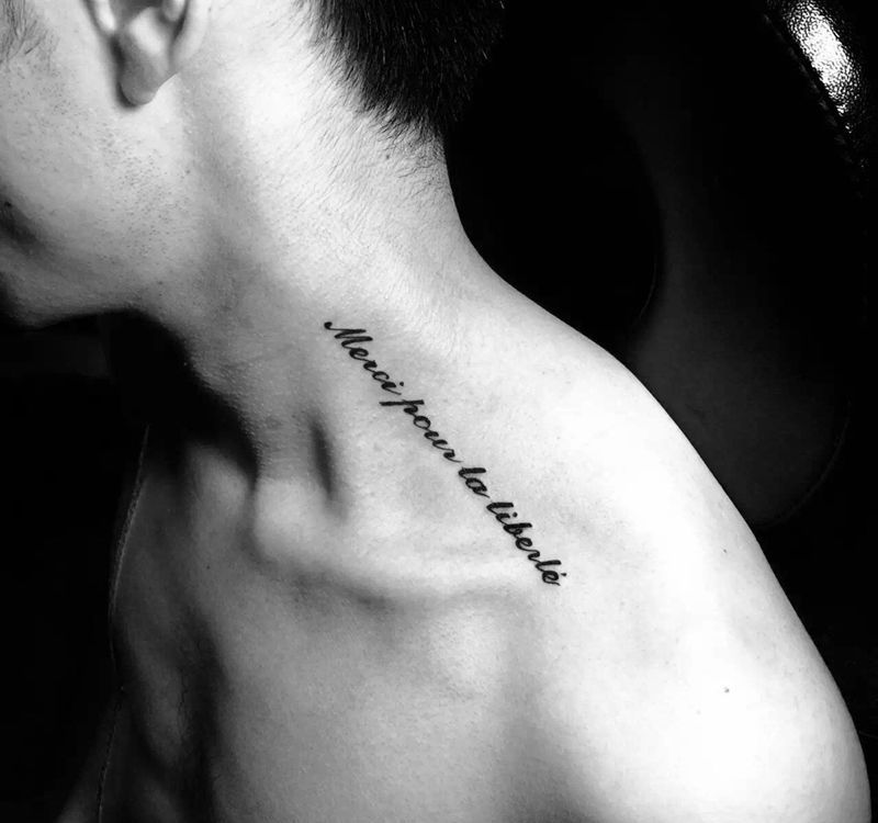 当前位置: 首页 >北京市纹身店-北京花刺纹身工作室纹身图案>肩膀法文纹身图片_