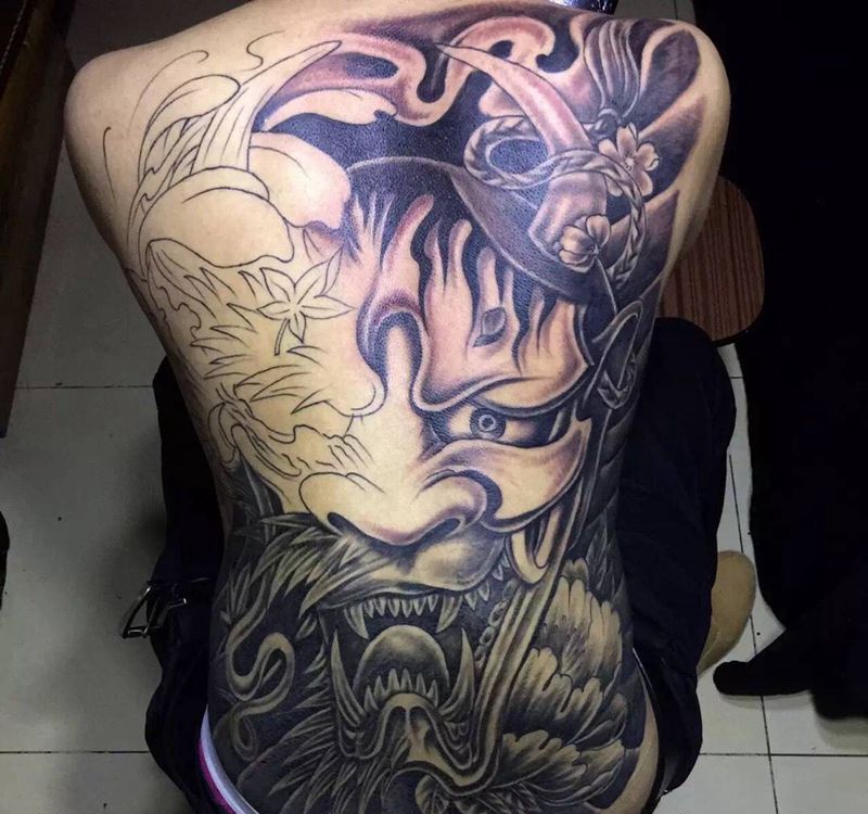 黑灰满背纹身图案