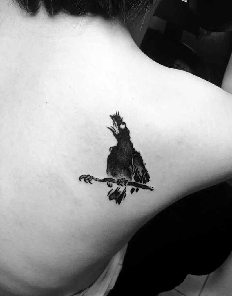 当前位置: 首页 >北京市纹身店-北京花刺纹身工作室纹身图案>乌鸦纹身图片_成品背部欧美动物纹身图案