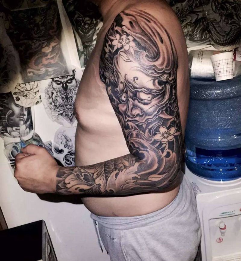 当前位置: 首页 >北京市纹身店-北京花刺纹身工作室纹身图案>传统黑灰花臂完成纹身图片_