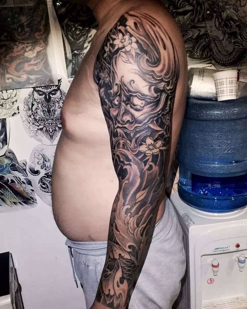 当前位置: 首页 >北京市纹身店-北京花刺纹身工作室纹身图案>传统黑灰花臂完成纹身图片_