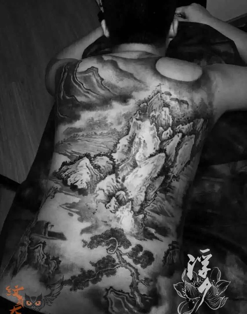 当前位置: 首页 >北京市纹身店-浮夕Tattoo纹身图案>山水有清音。纹身图片_