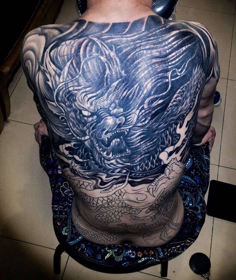 • T云龙九郎纹身图片_背部老传统云龙九郎纹身图案