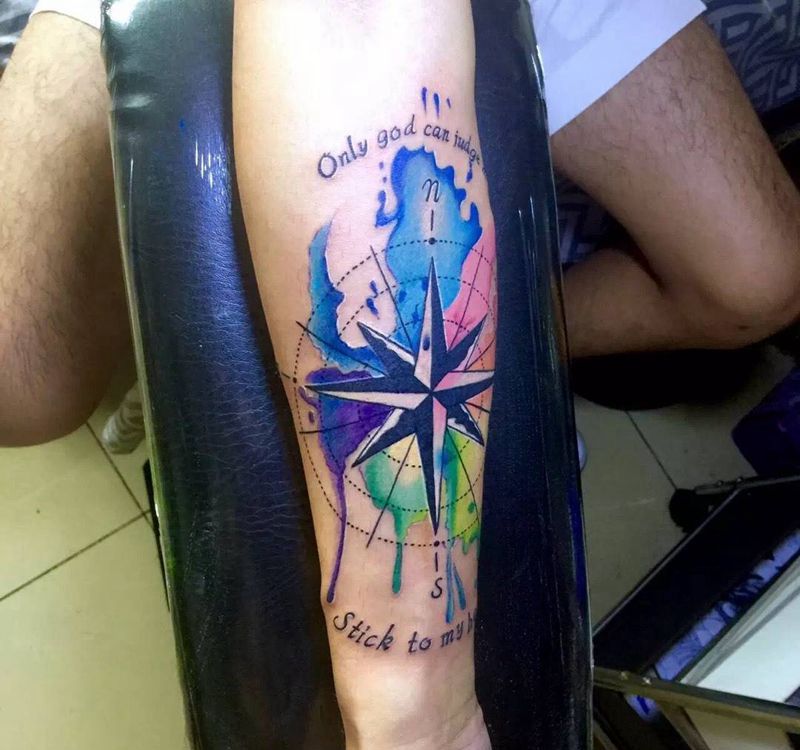 当前位置: 首页 >北京市纹身店-北京花刺纹身工作室纹身图案>小臂罗盘完成纹身图片_