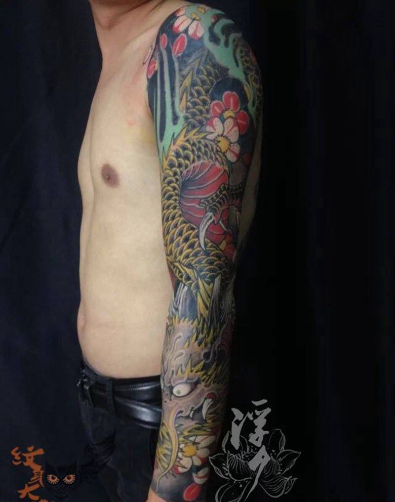 • T网红王老大花腿龙纹身图片_腿部新传统纹身图案