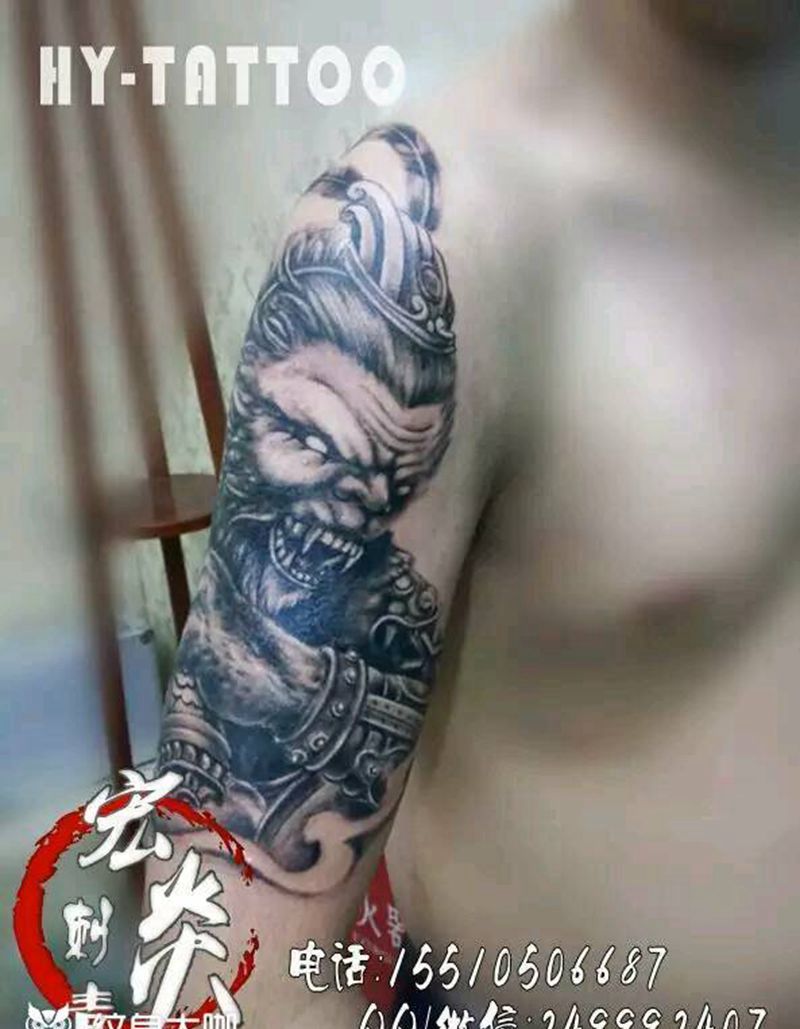 齐天大圣无惧纹身图片_肩部手臂传统习俗肖像人物鬼神宗教宏炎纹身成品纹身图案
