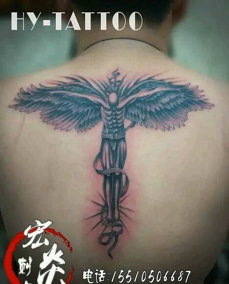 守护天使纹身图片_背部欧美写实人物成品纹身图案