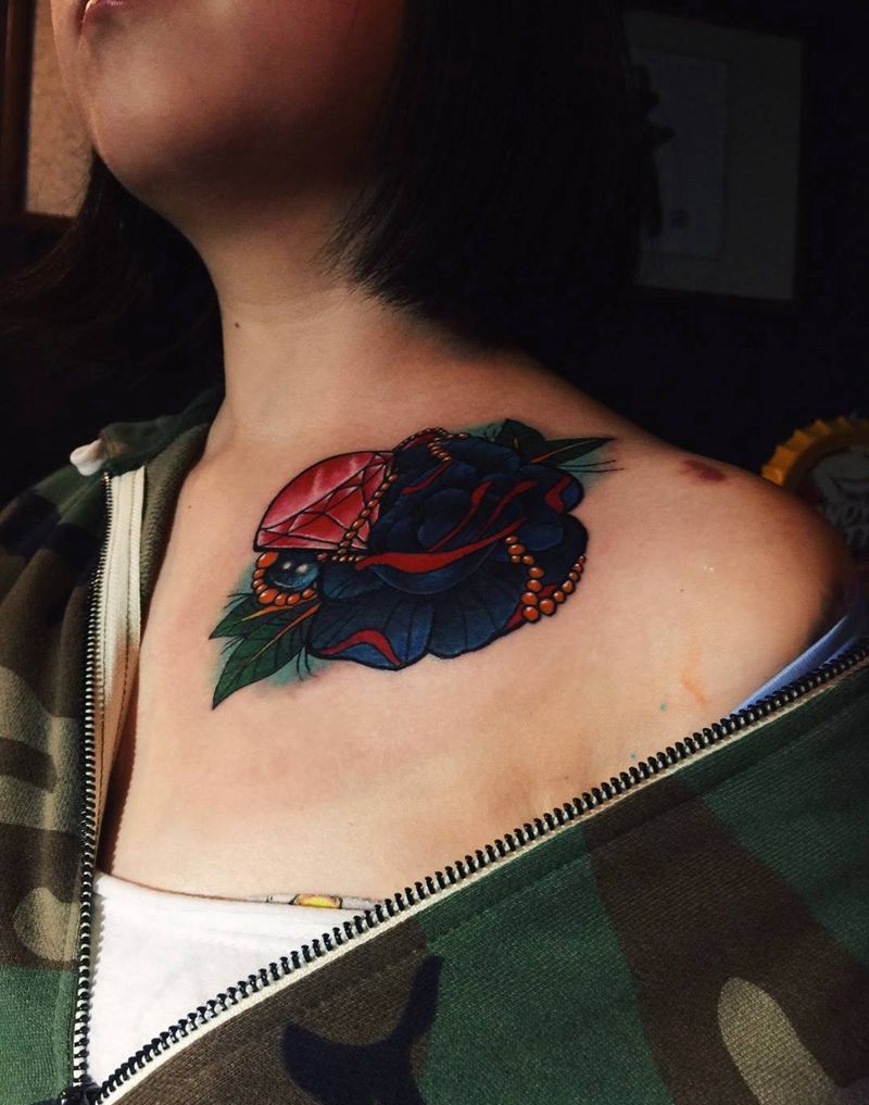• 女性大花胸纹身_43张霸气漂亮的女性大花胸纹身图案作品