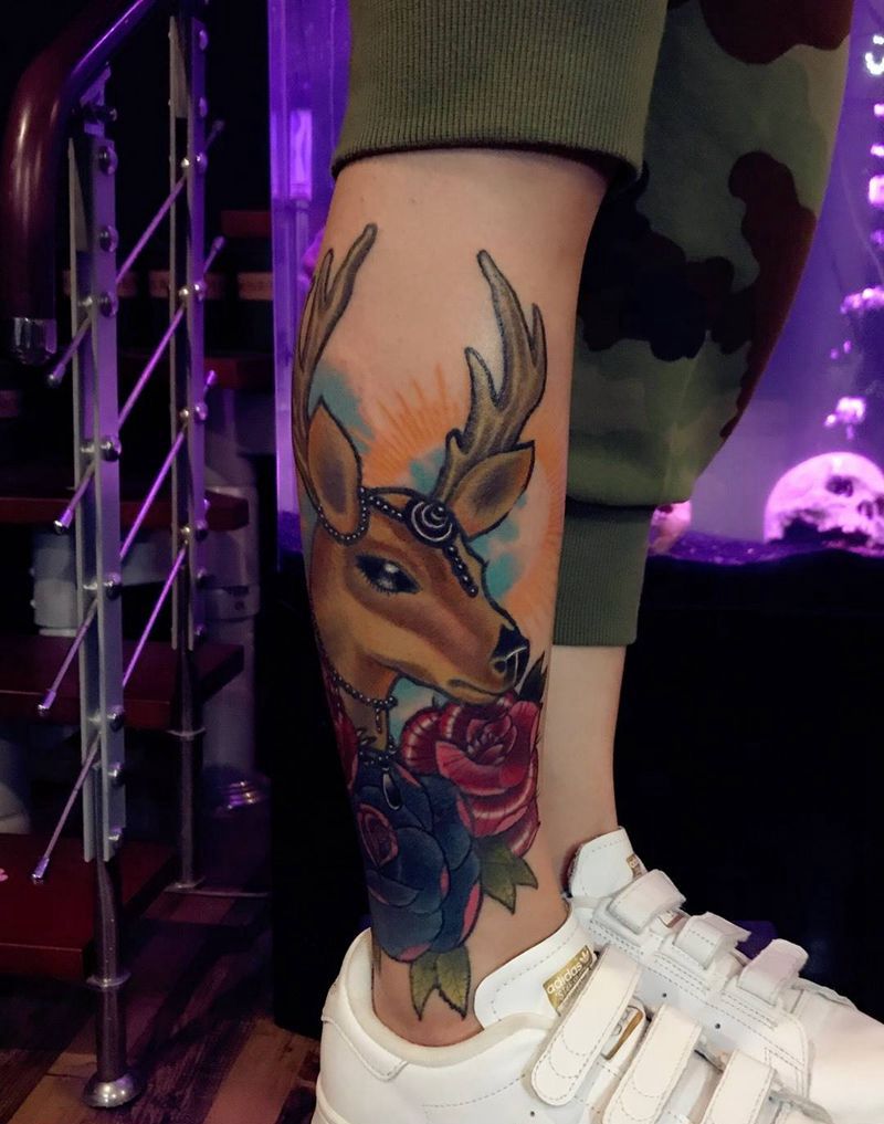 • T网红王老大花腿龙纹身图片_腿部新传统纹身图案