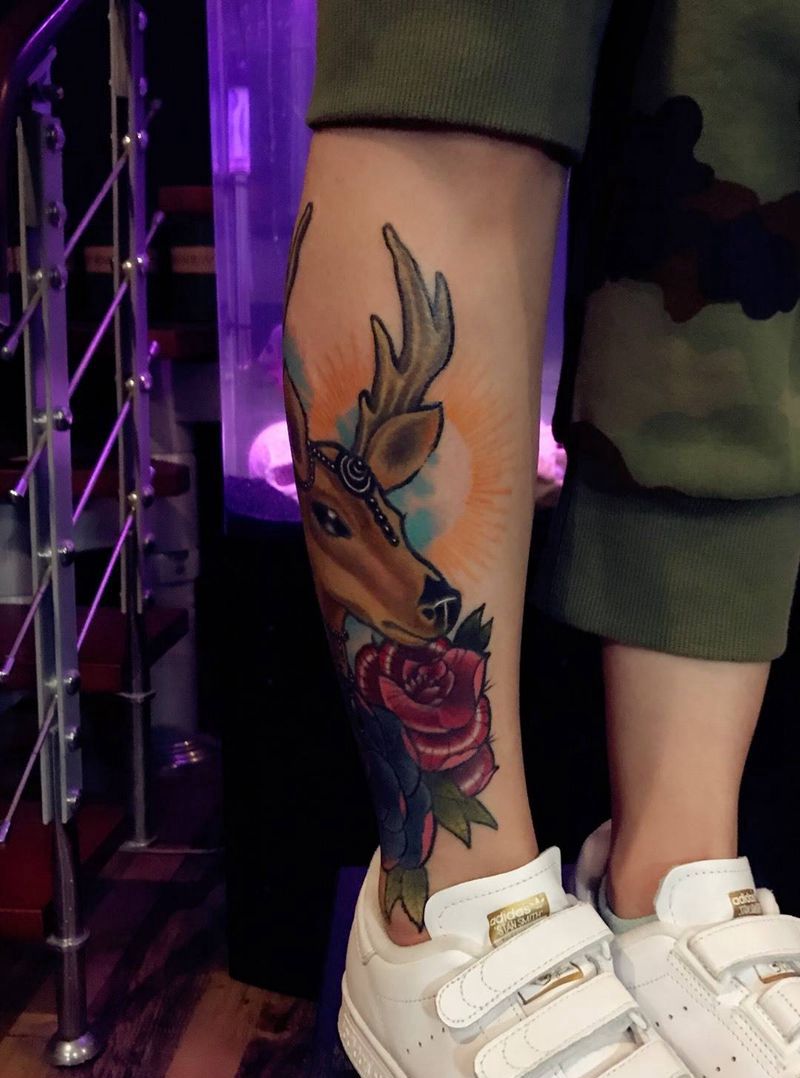 • T网红王老大花腿龙纹身图片_腿部新传统纹身图案
